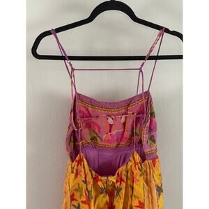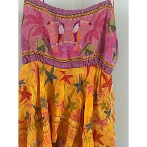 NWT FARM Rio Toucans Tropical Maxi Dress Ruffle Tiered Midi Orange Pink Size S