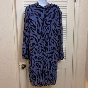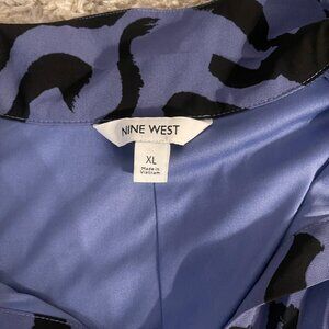 New without tags Nine West dress in size XL. Unworn and in perfect condition. Blue and black abstract print with lightweight pleated fabric that flows beautifully. Long sleeves with elastic cuffs and relaxed open collar neckline.