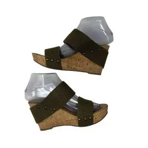 Lucky Brand Magnolia Double Strap Cork Wedge Platform Sandals US 6