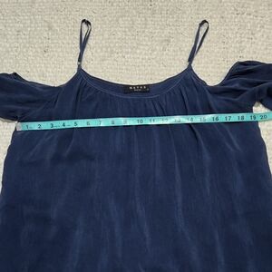Maven West Navy Blue Cold Shoulder Blouse Ruffle Bell Sleeve Size Small NWT