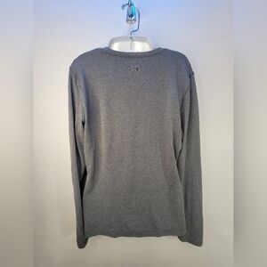 Under Armour women's size XL, Grey Long Sleeve V-neck Fitted Heatgear Tee. Logo on front left hem and back center.