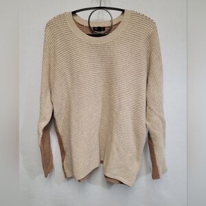 Tribal Womens Size 1X Dolman Whipstitch Contrast Color Long Sleeve Crewneck Sweater. Cream front, rust brown back with contrasting whipstitch from neckline to cuffs. Cotton blend 60% cotton 30% nylon 10% wool.