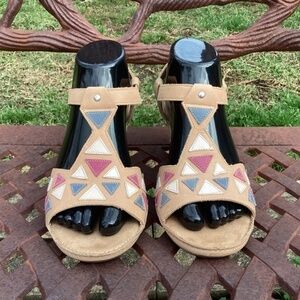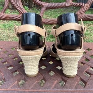 Aerosoles Leather T-Strap Jute Covered Kitten Heel Ankle Strap Open Toe Sandal