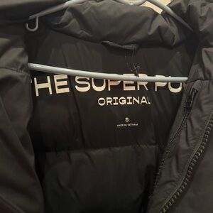 Aritzia Super Puff Reglar Length Black Puffer Jacket with Hood