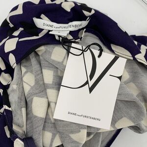 DVF Diane von Furstenberg Tadd Two Lace Stamp cowl scoop dress navy white new 8
