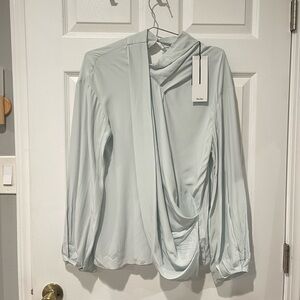 Acler Asymmetric Draped Silk Touch Top - Ice Blue - New With Tags