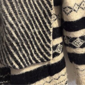 Two Sisters Fuzzy Cardigan Sweater Black Beige Metallic Open Front Shawl M