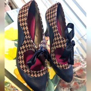 ✅ Leather and houndstooth check fabric with leather lining and cushion insoles.