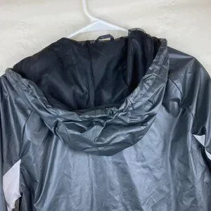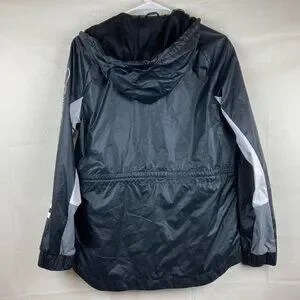 Adidas Women Sz S Black Wind Breaker Zip Up Hooded Jacket Cinched Waist