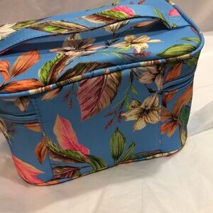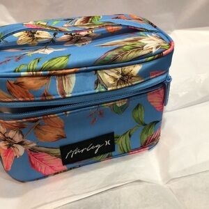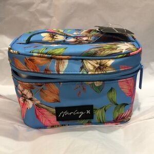 Hurley blue floral tropical island print makeup cosmetics bag case new