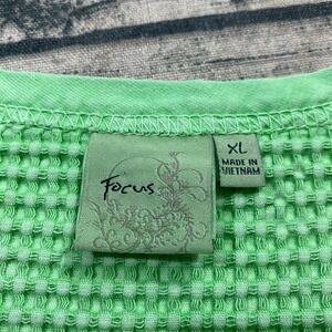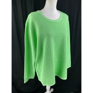 Focus Shirt Womens XL Waffle Knit Pullover Thermal Crewneck Bright Green