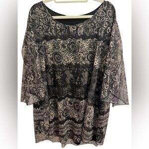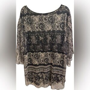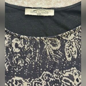 SESE CODE Women's Black and Tan Flutter Sleeve Blouse – Size 3XL FLowy Lined