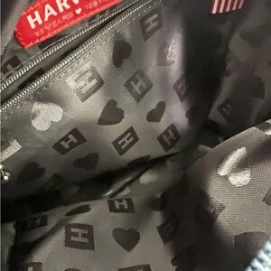 Chic Harveys mini bag. Features a sleek black and blue design. Comes with durable handles and a detachable strap.