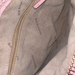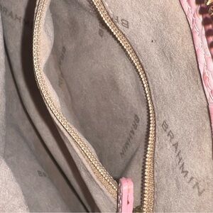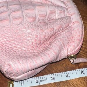 This thrifted stylish pink clutch features a sophisticated design. Light exterior / hardware scratches.