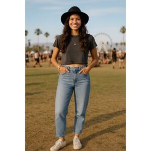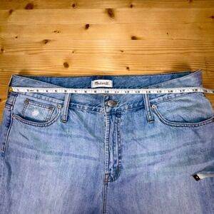 Keywords: madewell jeans, perfect vintage jean, women's size 34, high rise jeans, tapered jeans, light wash denim, rigid denim, straight leg jeans, 90s mom jeans, classic denim