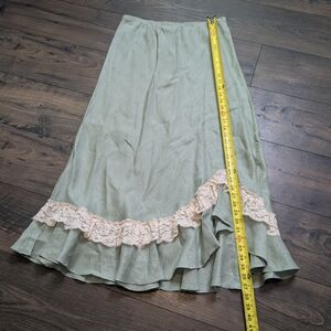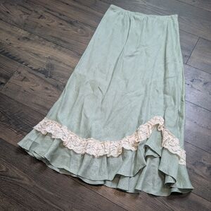 Zelie Linen Sage Vintage Fall/Spring Maxi Skirt with Lace Detail Size Large