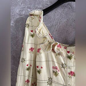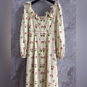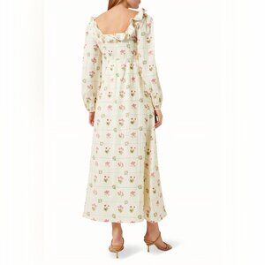 Flowy and airy, the "Montana" maxi dress from PALM NOOSA features a gridded floral print, scalloped lace-trim ruffles, and decorative front buttons