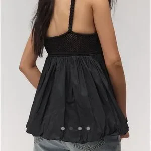 Chic black tank top with textured bodice. Perfect for stylish outings.