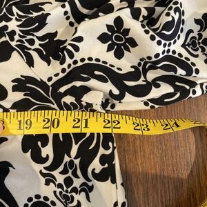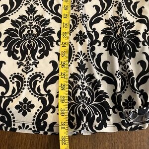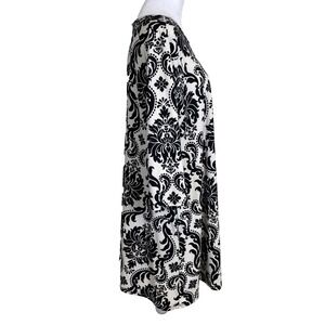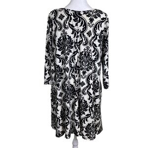 42 Pops Women's Shift Dress Size 1X Black Cream Damask Print Feminine Flowy Midi