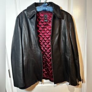 Black Genuine Leather Jacket Wilsons Leather Thinsulate Red Quilted Lining XXL