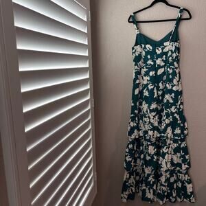 Abercrombie A&F Drama Ruffle Floral Tiered Maxi Dress Green White Medium