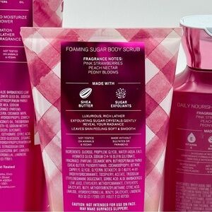 Bath and Body Works Gingham Gorgeous Gift Set. Moisturizing Body Wash, Foaming Sugar Body Scrub and Body Lotion. Full size. New. Sold as set only. Includes gift bag and bow for easy gift giving!