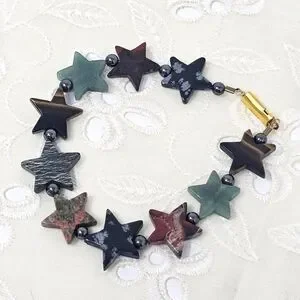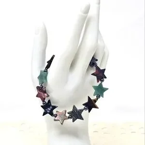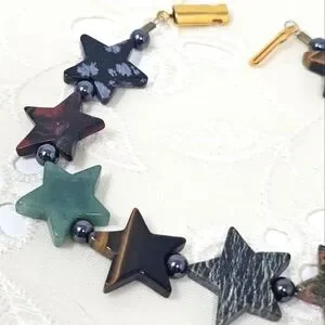 Add a touch of whimsy to your outfit with this vintage gemstone star bracelet. Featuring a mix of black, green, and brown hues, it's perfect for any occasion.