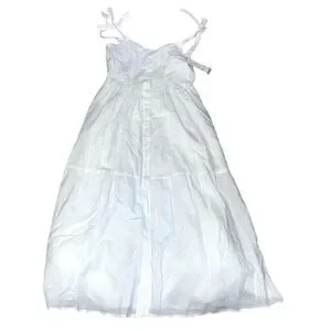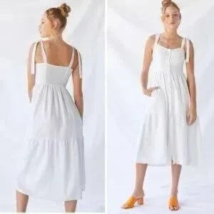 Urban Outfitters Positano Midi Dress Tie Shoulder White Pockets Linen Size M