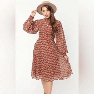 🦋B2G1🦋UNIQUE VINTAGE Rust Brown Leona Swing Dress NWOT | MEDIUM |