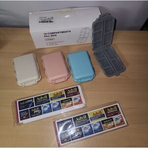 Travel Pill Organizer with Multiple Labels - 10 Compartments (PACK OF 4)~NEW.