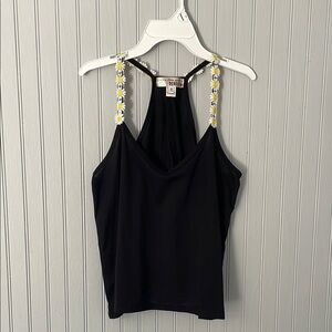 Black and Yellow Open Back Tank Top With Floral Straps | Medium