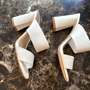 Gianni Bini White Heeled Mules with Chunky Block Heel