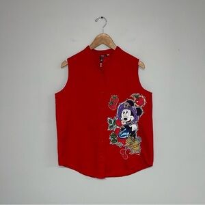 Mickey Unlimited Button-up Shirt Size Small Red Paint Sleeveless Blouse Vintage