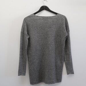 Knit with a marled blend of wool and linen. Lightweight and cozy. Super comfortable! V-neckline makes for easy layering. Features small side slits. High low length. In great condition, no notable flaws.