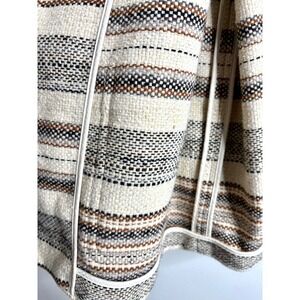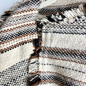 Color/Pattern: Cream with black & brown stripes, fringe trim detail