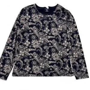 Croft & Barrow Black and Cream Paisley Top