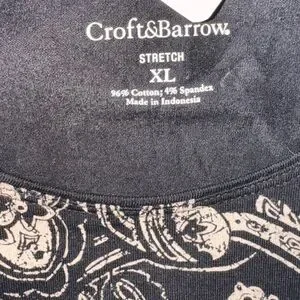 Elegant Croft & Barrow top with a paisley design. Features black and cream colors. Comfortable stretch fabric.