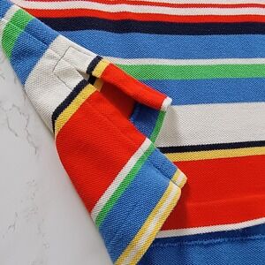 The Vintage Polo Ralph Lauren Men's XXL Multi-Color Striped Short Sleeve Polo Shirt is a stylish and colorful addition to any man's wardrobe. Made by the iconic brand Ralph Lauren, this polo shirt features a classic striped pattern in a variety of colors, giving it a vibrant and eye-catching look. The short sleeves and comfortable design make it perfect for casual or semi-casual occasions, while the XXL size ensures a comfortable fit for larger individuals. This shirt is a versatile piece that can be easily dressed up or down for any occasion.