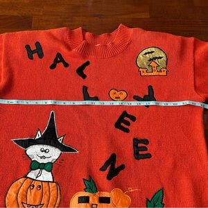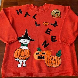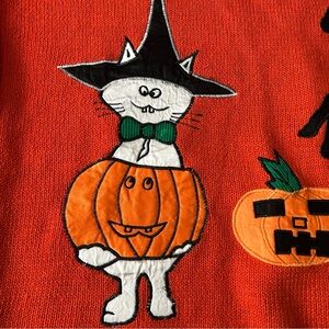 Vintage Colleen’s Collectibles 90’s Orange Halloween Embroidered Pumpkin Cat Pullover Sweater