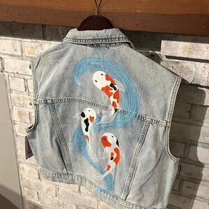 Custom Painted Koi Fish Women’s Denim Jean Jacket Vest Wild Fable New w Tags.
