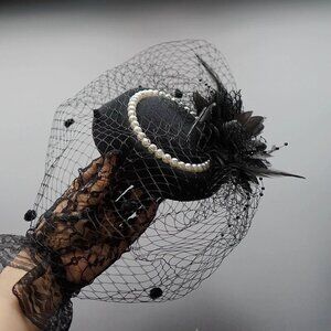 Elegant Gothic Lolita Tea Party Hat - Black Lace Veil with