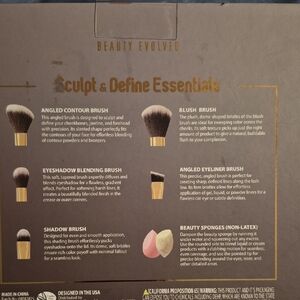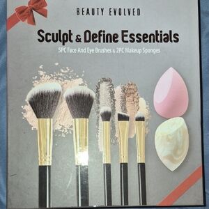 Enhance your makeup routine with this Beauty Evolved set. Includes 5 face and eye brushes and 2 makeup sponges. Perfect for blending and contouring.
