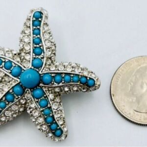 Elegant starfish brooch. Features turquoise stones. Silver accents add sparkle. Perfect for any outfit. Can be used as a brooch or pendant.NWOT
