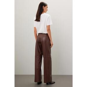 VEDA Brown Leather Trousers Size 4 with Leather Scuffing and Small Snag MSRP $370