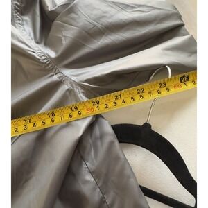 The Chico's Zenergy Chico's Size 2 US L Gray Hooded Lined Zip Front Jacket is a stylish and practical outerwear option for women. Made from 100% polyester with a polished smooth polyester fabric type, this solid gray jacket features a zippered closure, lined interior, and a removable hood. Perfect for travel, casual wear, or sporty occasions, this jacket also includes zipped pockets for added convenience. The Chico's brand ensures quality and style, making this windbreaker a versatile and comfortable choice for any woman's wardrobe. No idea why the tag is upside down --