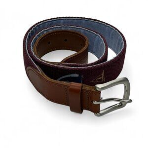 Vineyard Vines Mens Belt 34 Red Leather Solid Brass Buckle Golf Business Casual