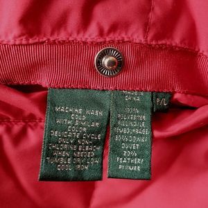 Lauren Ralph Lauren Women Vest L Petite Red Down Puffer Full Zip Snap Reversible