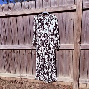 Rusttydustty Dress Womens XL Black Floral Boho Paisley Maxi Hippie Sleeve Belted