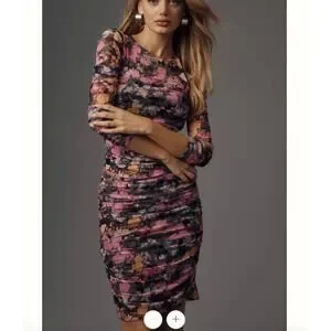 By Anthropologie Ruched Mock-Neck Long-Sleeve Midi Dress Small