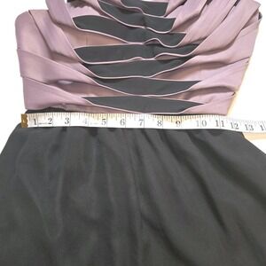 BCBGeneration Cocktail Dress Black Mauve Pleated Bodice Cross Strap Avant Size 4